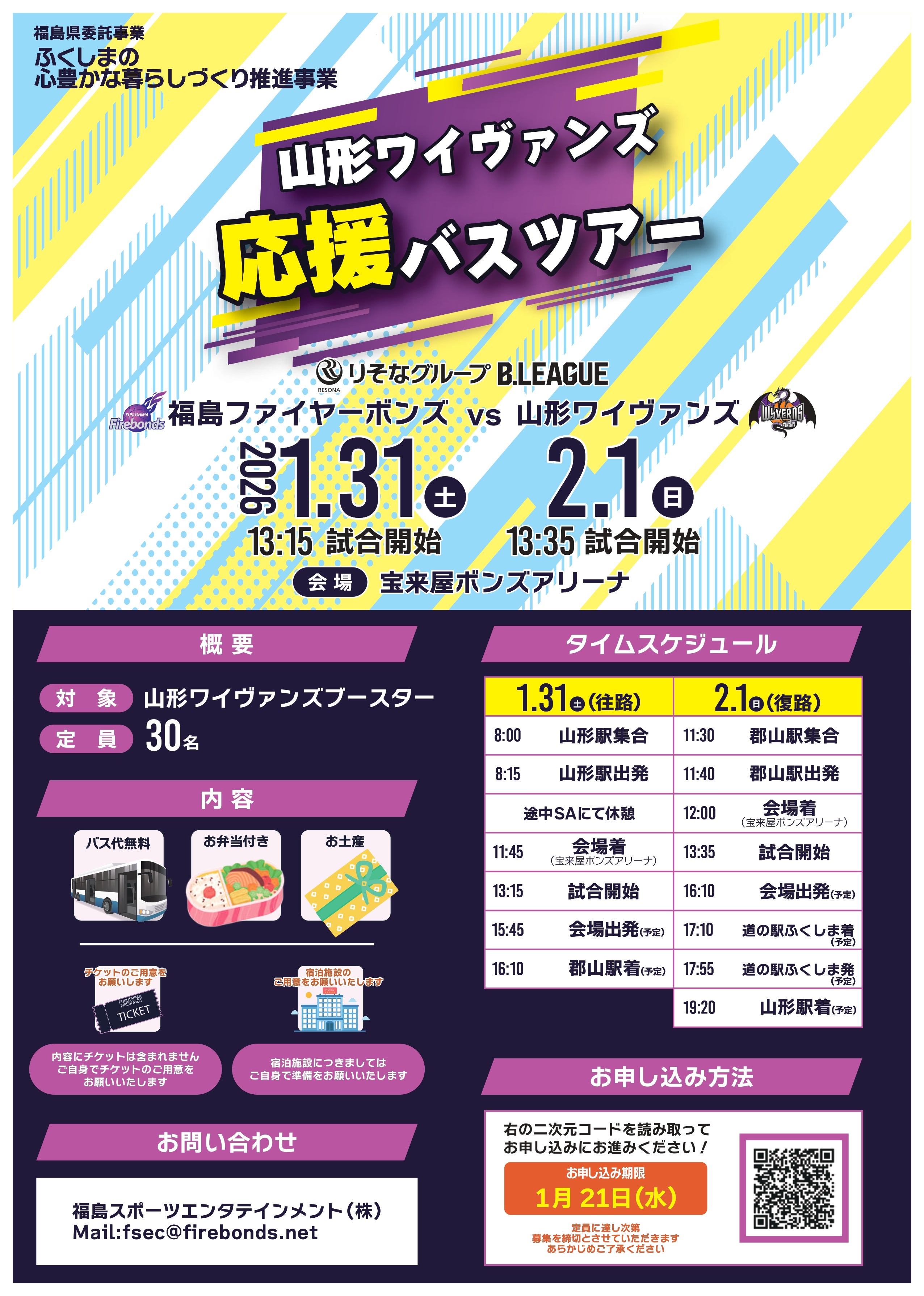 【山形ワイヴァンズブースター対象】バスツアー開催のお知らせ