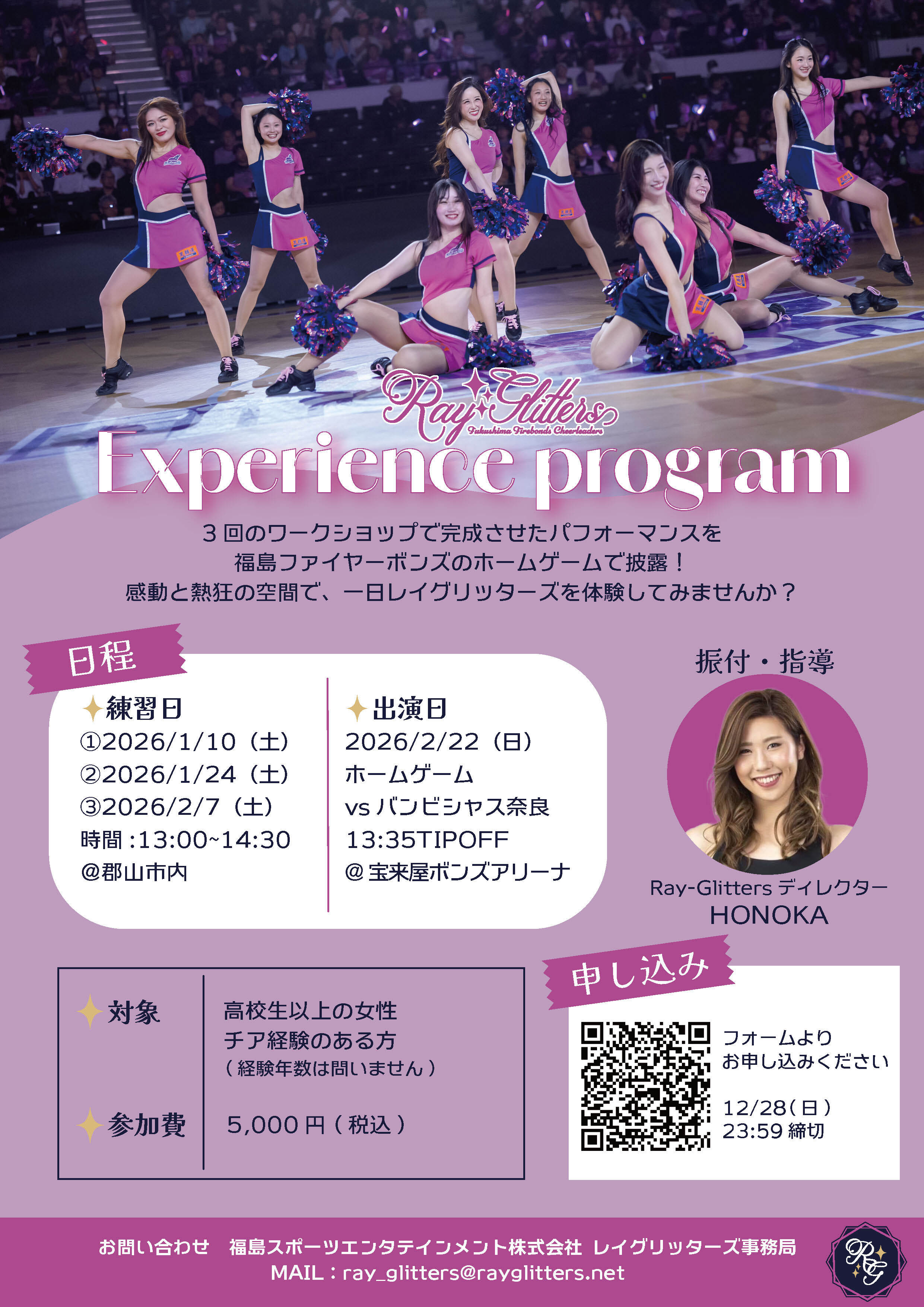 Ray-Glitters Experience Program(チア体験プログラム)開催のお知らせ