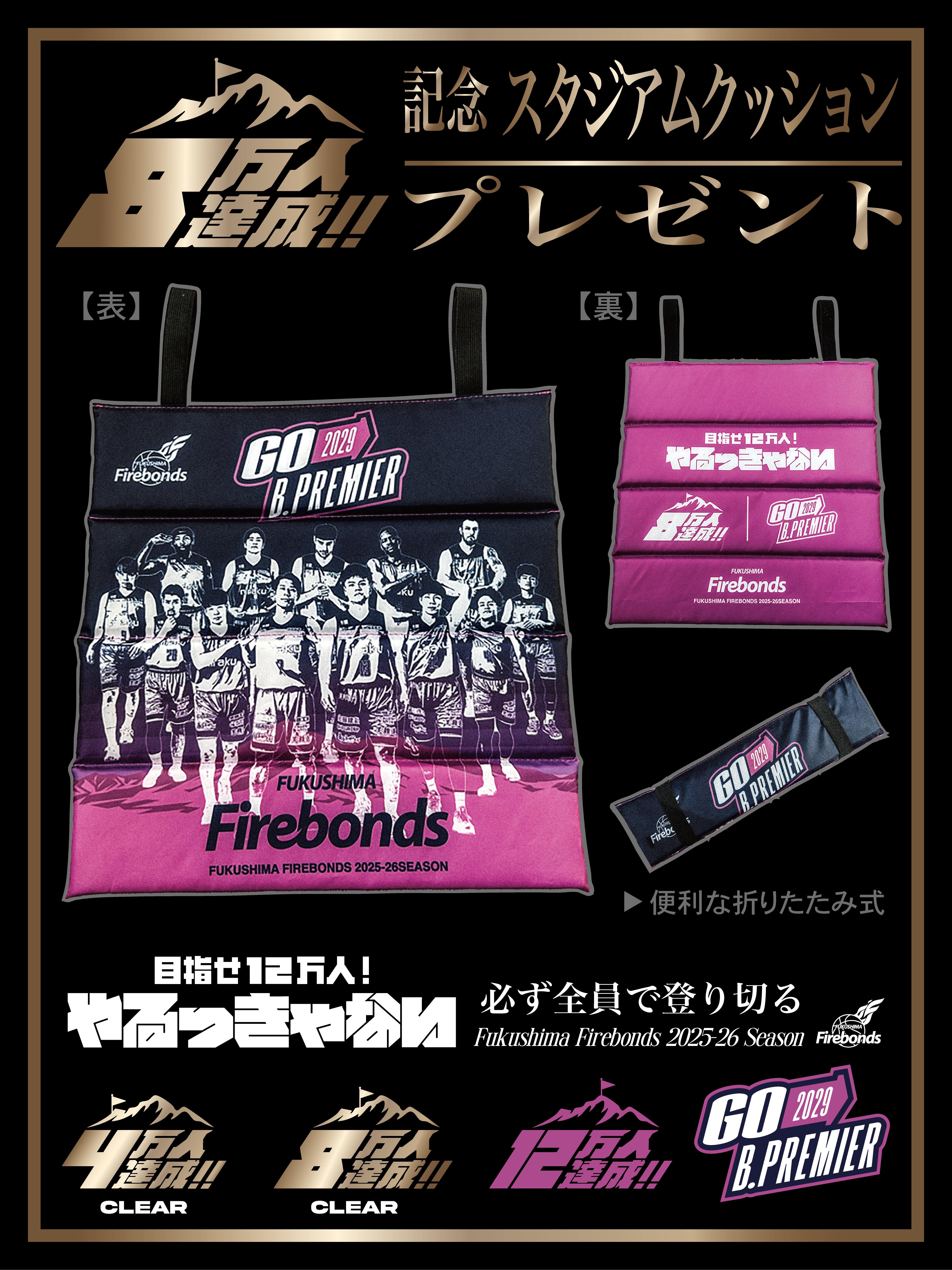 『8万人達成 記念 スタジアムクッション』を到達した次のホームゲームにてプレゼント!