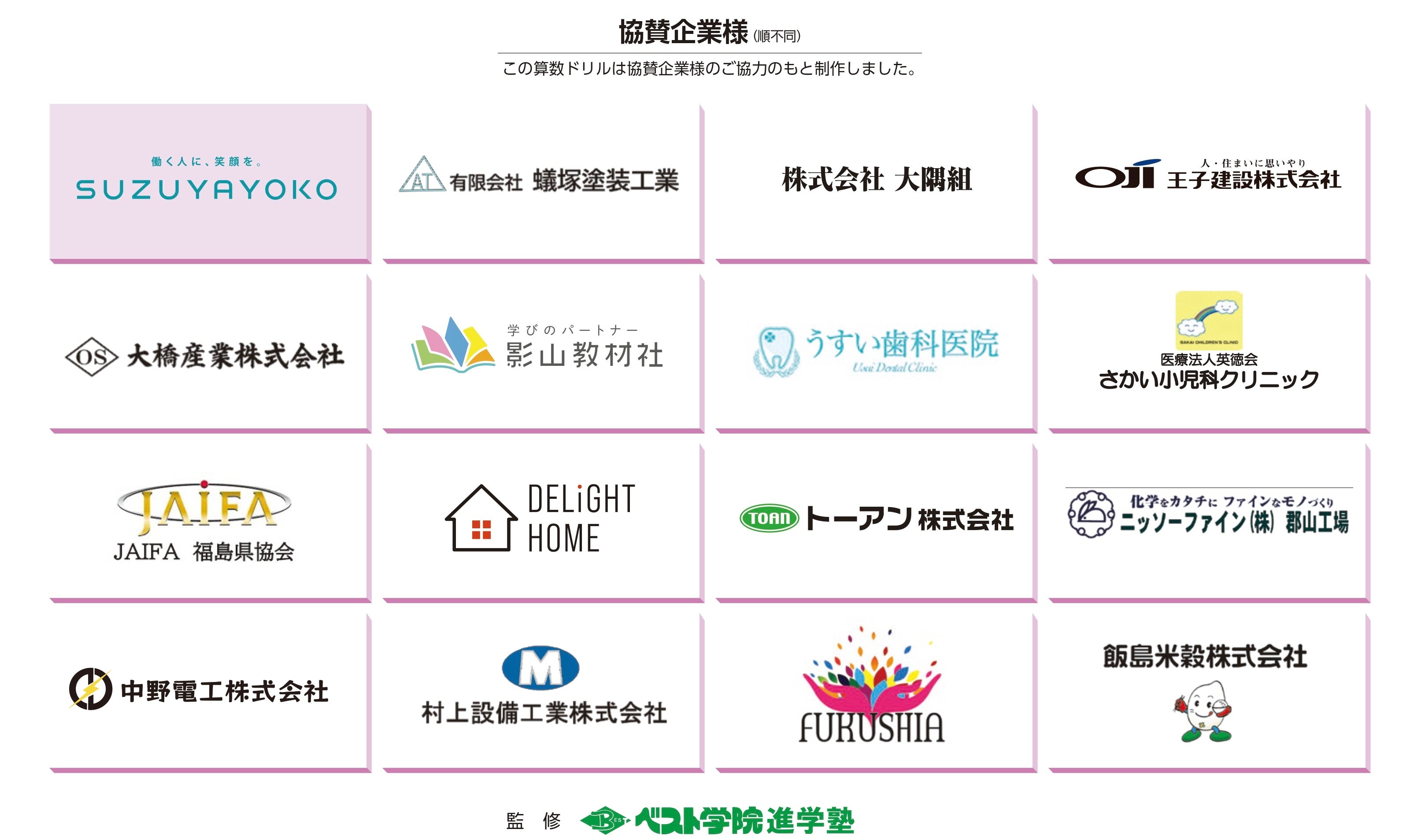 ベスト学院進学塾様監修のもと、小学校6年生で学ぶ単元の問題や活用・発展問題を掲載しております。