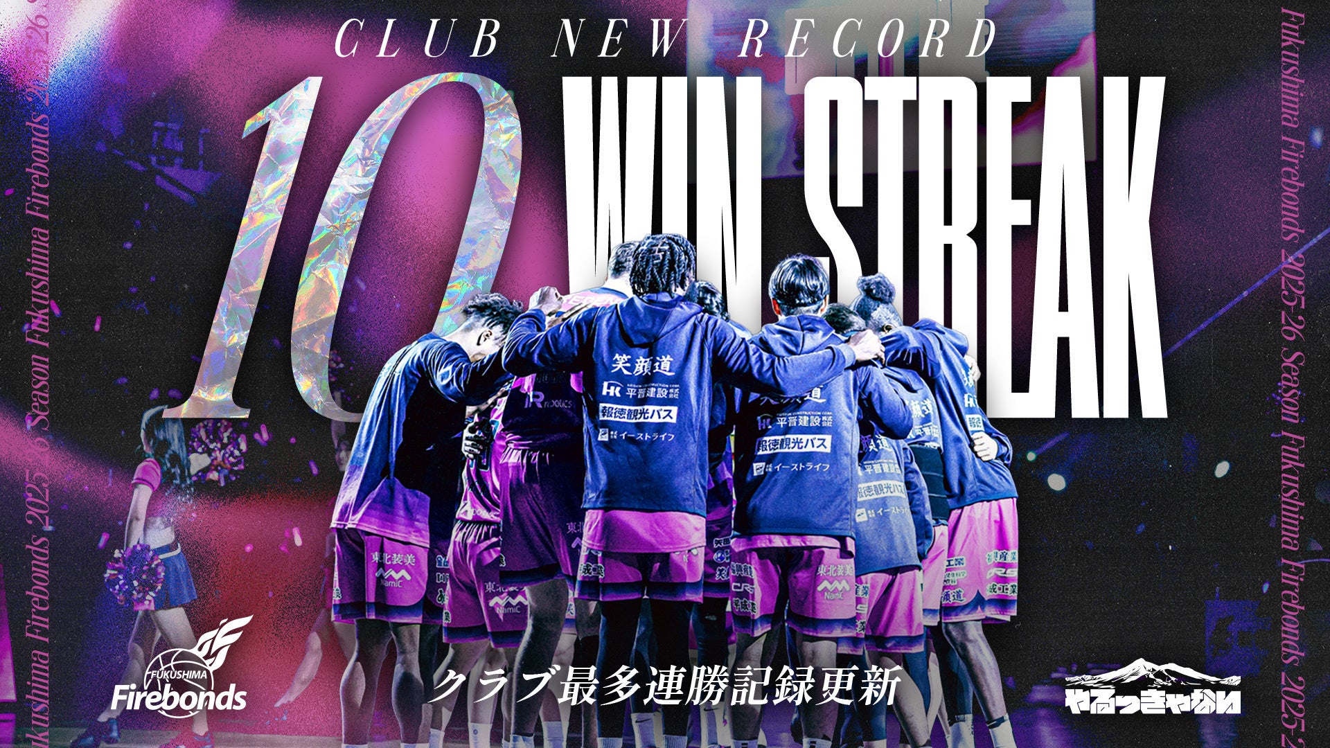 この度、福島ファイヤーボンズは11月8日(土)福井ブローウィンズ戦GAME1にてクラブ史上最多連勝記録を更新しました!