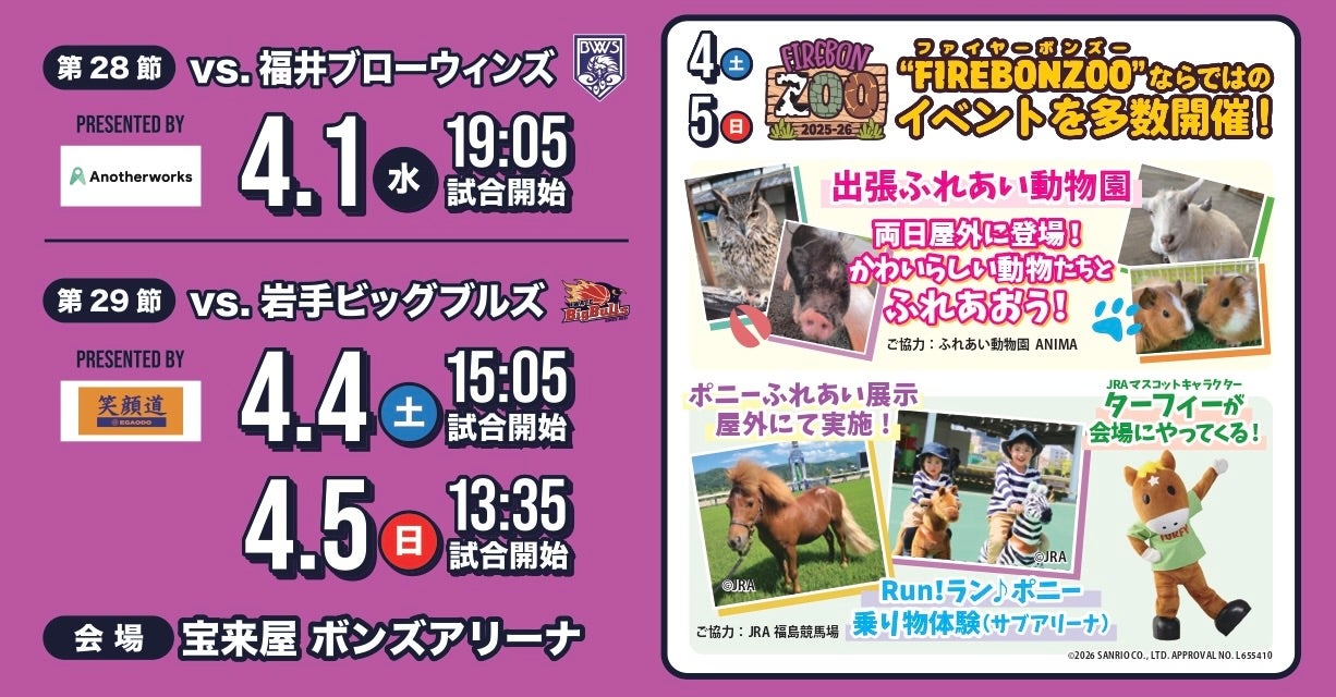 [2026.03.18] 【福島放送特別企画】4/1福井戦,4/4-5岩手戦にご招待!