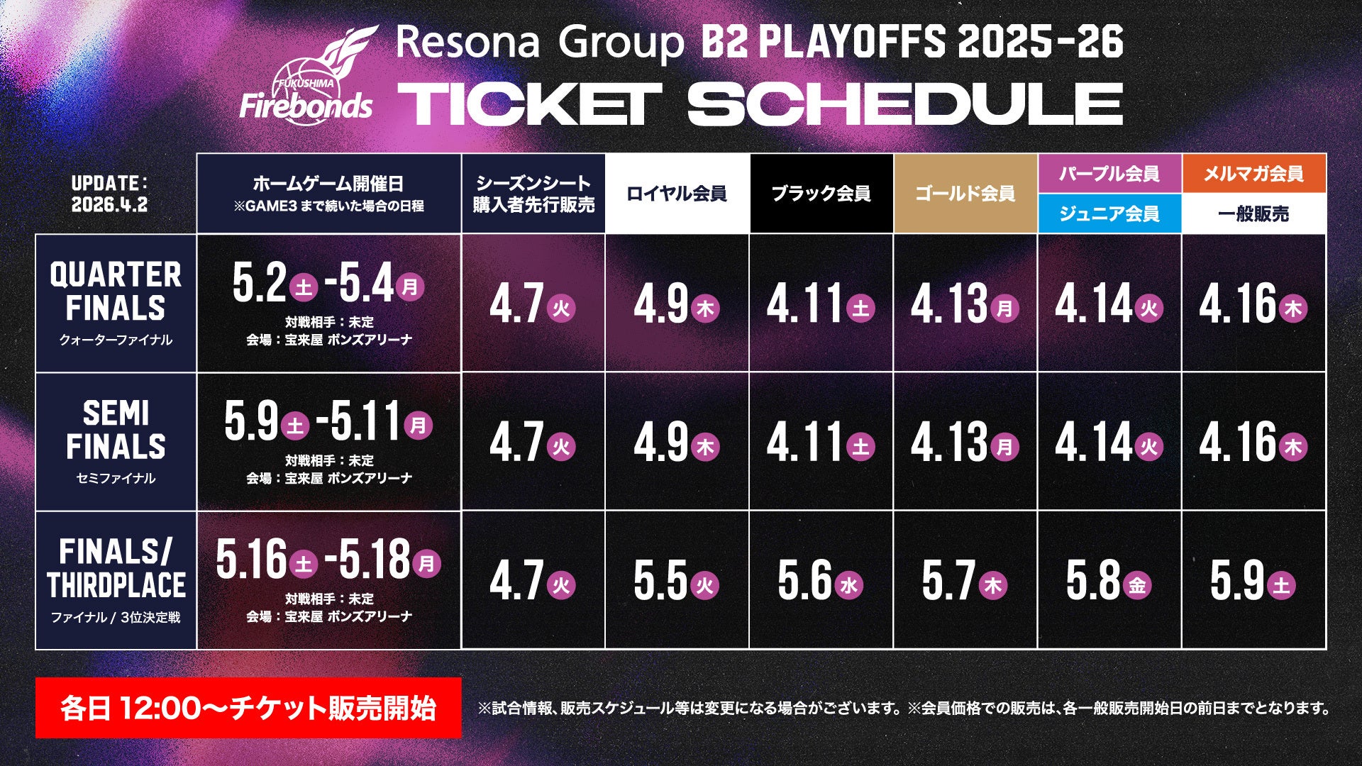 [2026.04.02] りそなグループ B2 PLAYOFFS 2025-26 試合日程・チケット販売 概要決定!